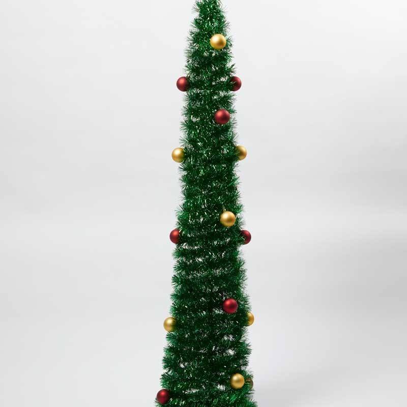 ARBOL BRILLANTE PLEGABLE CON BOLAS. DE 150 CM.