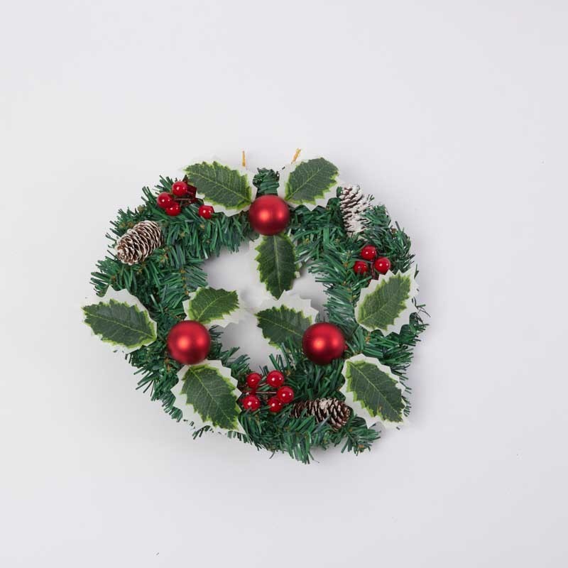 CORONA MUERDAGO, BOLAS Y GUINDAS. 30 X 6 CM