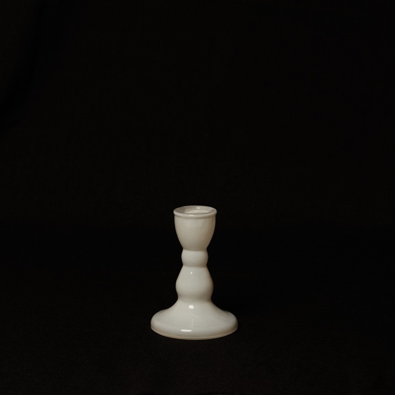 PORTAVELAS VIDRIO REDONDO. BLANCO. 9 X 6,5 CM.