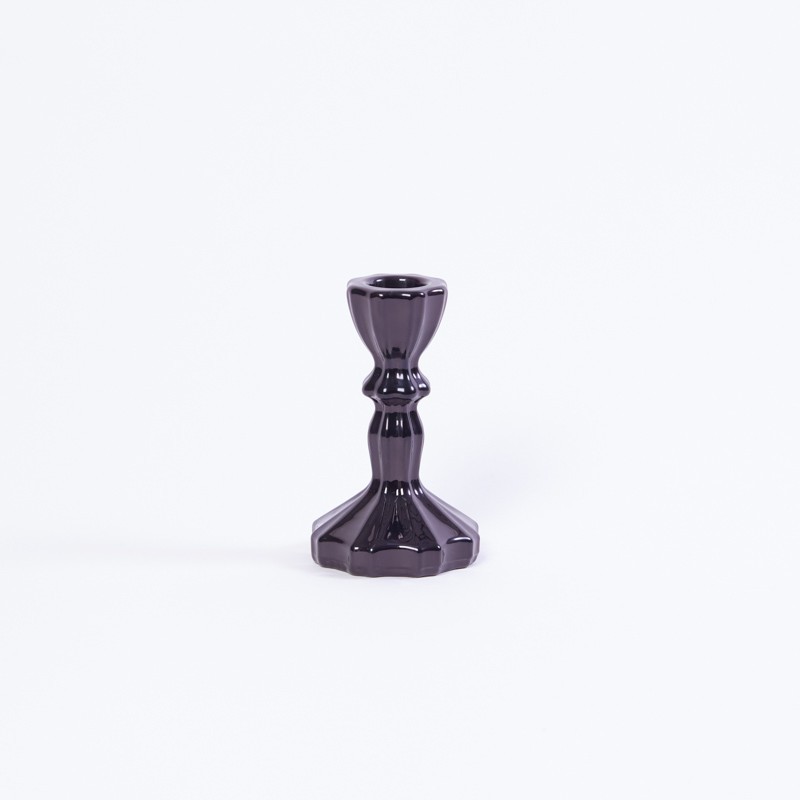 PORTAVELAS VIDRIO FACETADO. NEGRO. 11 X 7 CM.